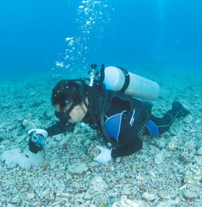 海南南海热带海洋研究所所长陈宏在珊瑚移植前进行海底环境调查。于志龙摄