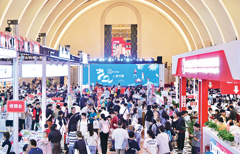 上海持续深化全民阅读工作,将上海书展作为“书香上海”建设的重要承载。2024上海书展期间,全国19家出版集团、360余家出版社携16万余种精品图书参展,7天主会场入场29.8万人次,为读者奉上了一场书香四溢的文化盛宴。图为2024年8月14日上海书展开幕首日,大量市民、游客前来阅读和购书。 上海市委宣传部供图 新民晚报记者 王凯/摄