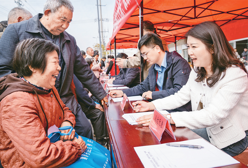 2024年4月11日,江苏省海安市孙庄街道人大工委组织市人大代表、街道议政代表走进当地集市,零距离接待选民群众,讲解政策法规、派发宣传资料,协调解决他们在生产生活中的实际困难。图为当日,人大代表在集市上面对面倾听群众的意见和建议。 人民图片 翟慧勇/摄
