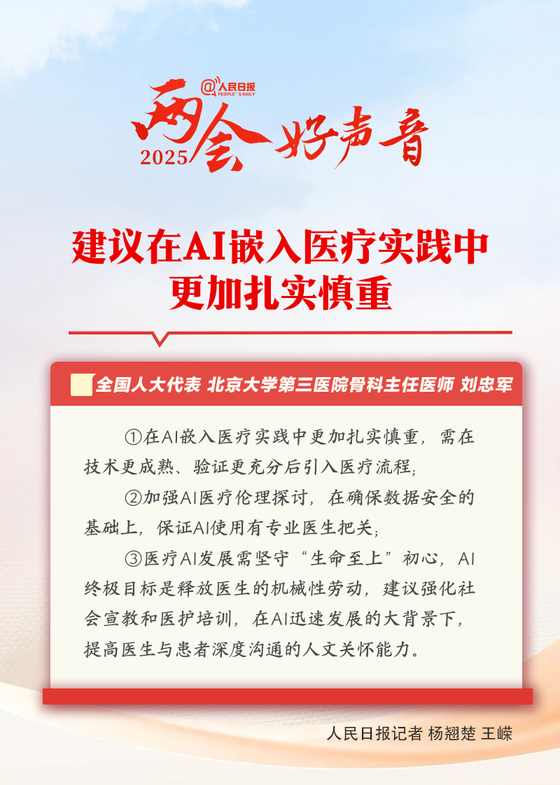 【刘忠军代表:建议在AI嵌入医疗实践中更加扎实慎重】