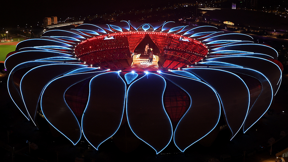 2023年9月23日,第19届亚洲运动会开幕式上,最后一棒火炬手汪顺和“数字火炬手”在开幕式上点燃主火炬。